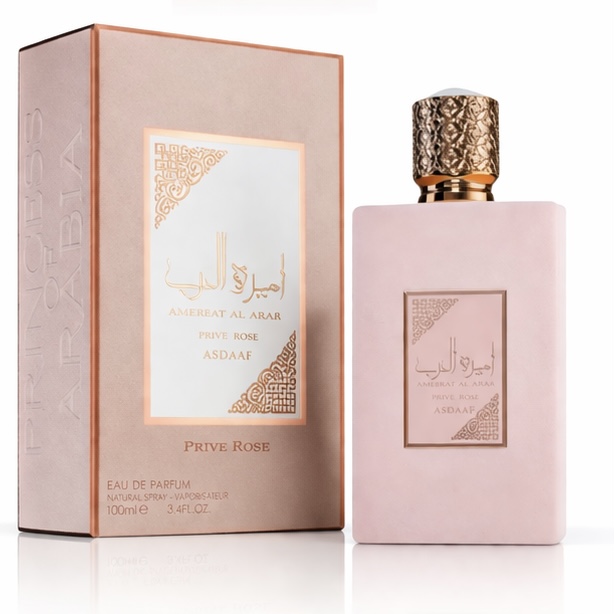 Conteúdo da embalagem: 1 frasco de Ameerat Al Arab Prive Rose Asdaaf de 100 ml.